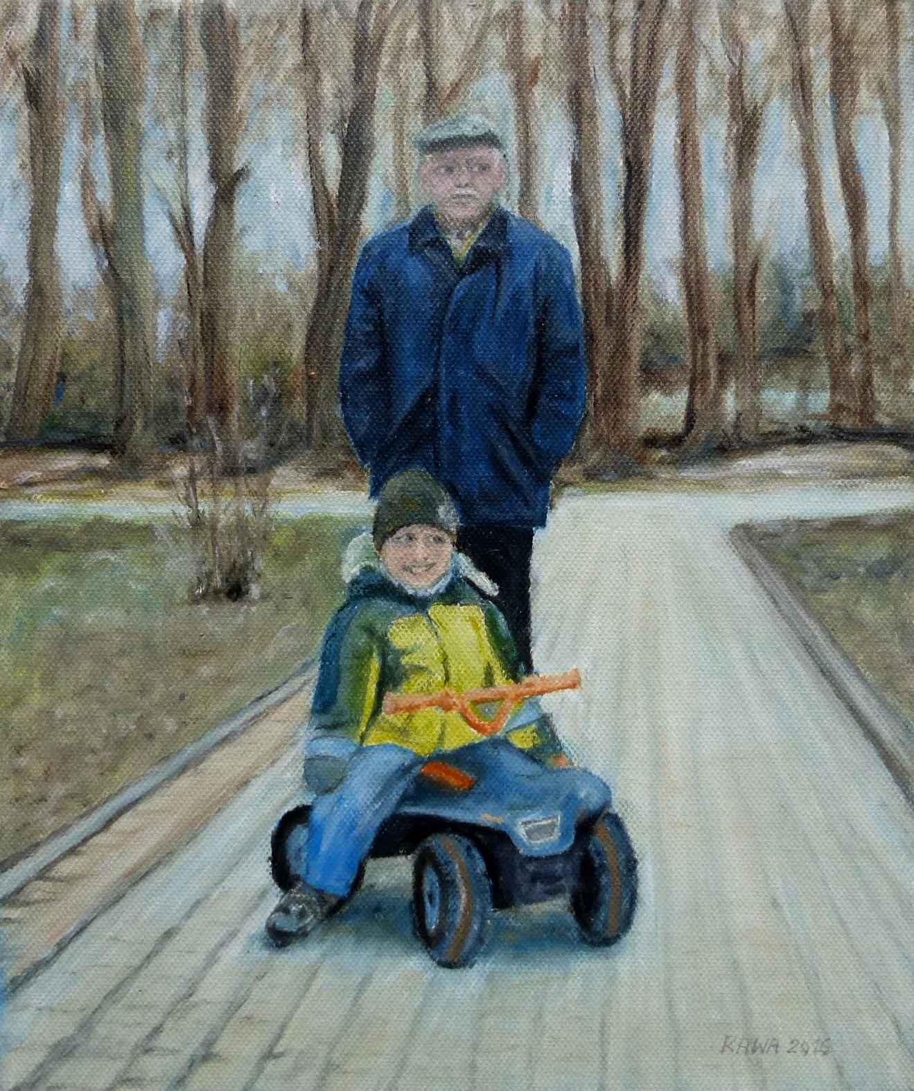 2. Na spacerze, 25x30 cm, olej, płótno;